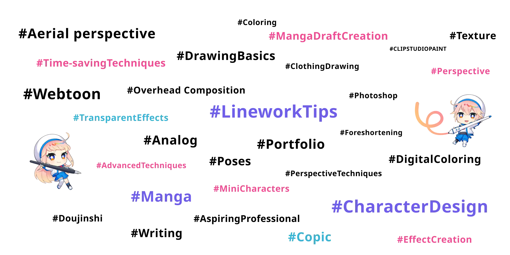 In lessons, you’ll work on tasks tailored to your goals. If you have illustrations or manga to discuss, you’ll get targeted advice, feedback, and techniques.